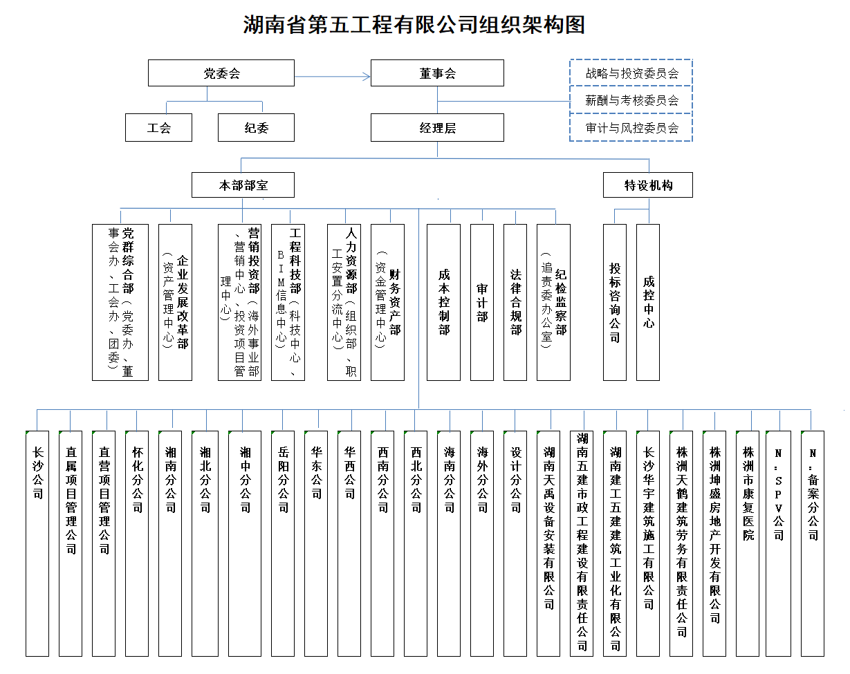 湖南省第五工程有限公司創(chuàng)建于1953年,前身為中南工程管理局第五工程公司,1958年由湖南省基本建設(shè)局命名為湖南省第五工程公司,2008年經(jīng)湖南省國(guó)資委批準(zhǔn),更名為湖南省第五工程有限公司,系國(guó)家建筑工程